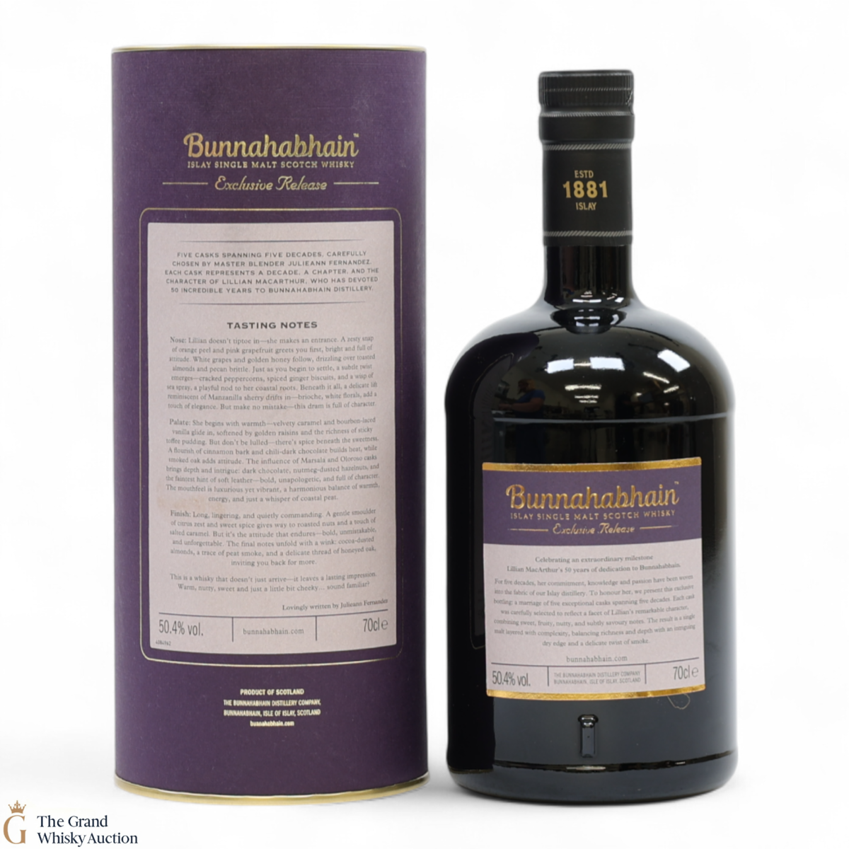 Five casks spanning five decades, carefully chosen by Master Blender Julieann Fernandez. Each cask represents a decade, a chapter, and the character of Lillian Macarthur, who has devoted 50 incredible years to Bunnahabhain Distillery.