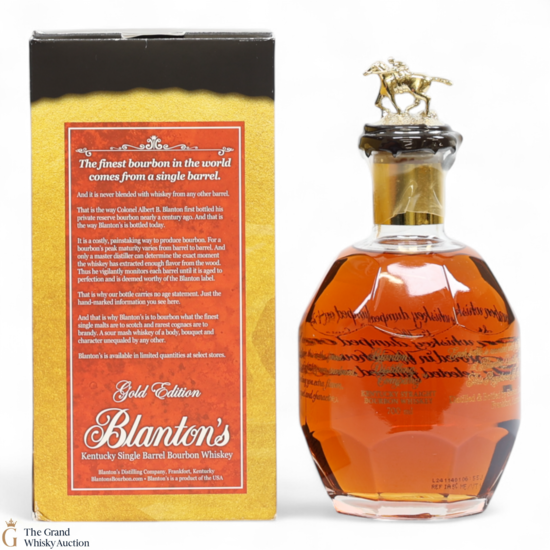 PLEASE NOTE: The wax seal on Blanton's bottles are prone to cracking in transit due to their design. Therefore, as stated in our T&C’s, we do not and will not accept liability should the seal be breached, broken, split or leak in transit. Additionally, please know due to the design of the internal cardboard packaging that surrounds the top of the bottles, it too may be torn. By bidding on this lot you have understood this to be true. Insurance is for complete breakage or loss in transit only.
