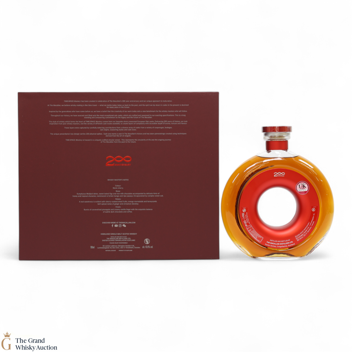 This whisky is contained in a unique circular vessel symbolising the circle of life and the ongoing journey from the past to the future. It was matured in one of Macallan's bespoke sherry-seasoned European oak casks until bottled at a strength of 43.6% ABV.