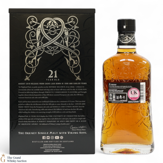 21-year-old Highland Park is considered one of the best expressions of Highland Park produced by many. Created exclusively for global travel retail and duty-free markets. Released in August 2019, Highland Park 21 is a full-flavoured, powerful, sweet single malt with a rich smoky finish.