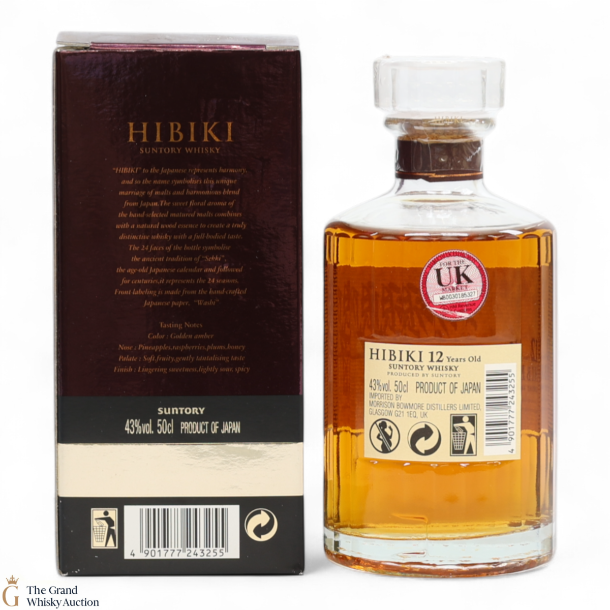 This now-discontinued Hibiki 12 year old is a superb blended Japanese whisky meaning it has become a very popular, rare and collectable bottling. Hibiki includes malt whisky from Yamazaki and Hakushu, as well as grain whisky from Chita. The whisky is partly matured in plum liqueur barrels. Unfortunately, Hibiki 12 was discontinued by Suntory in 2015.