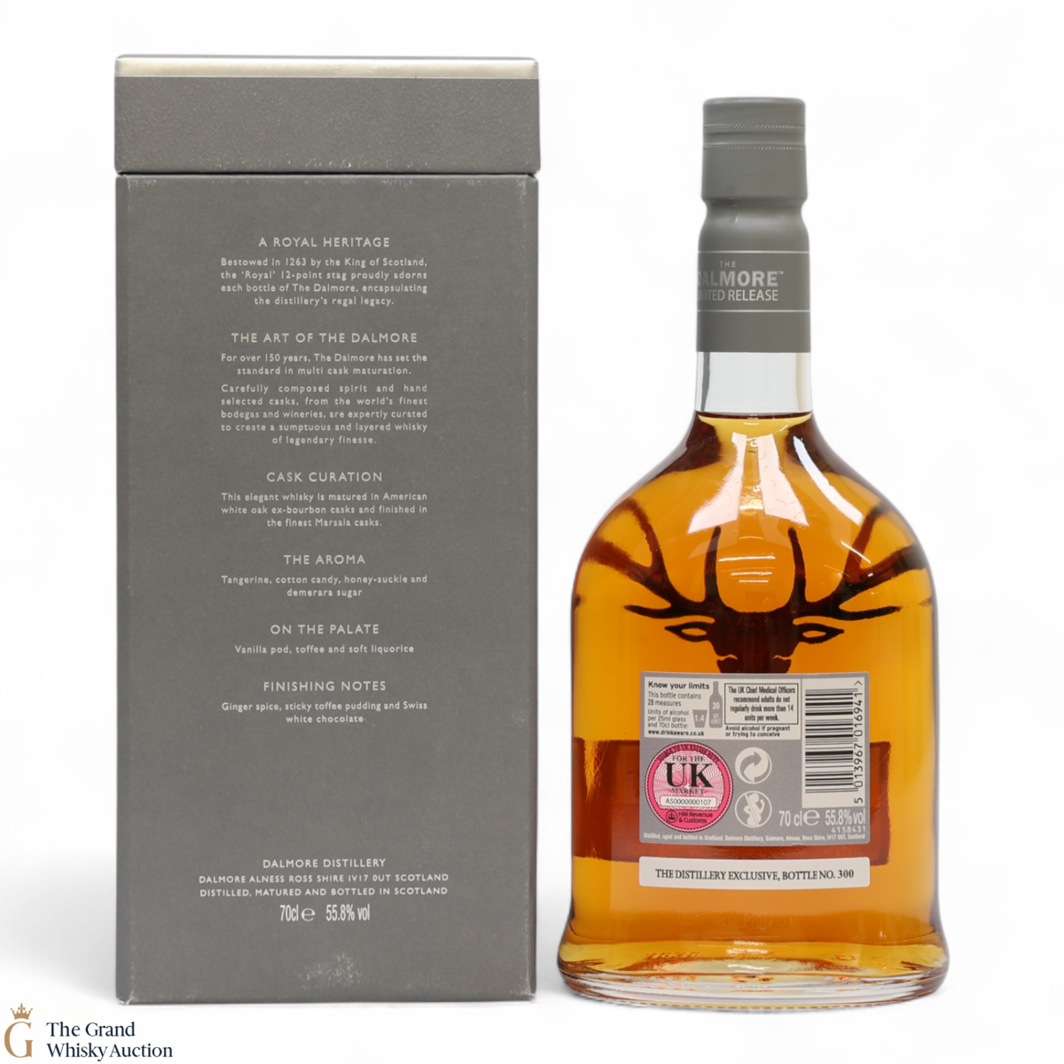 Due to the various ages of bottles and their seals, the condition of liquid is at the buyer's discretion and no claim can be lodged against failure/leakage in transit. Loss and breakage cover is available at 3% of the hammer price as standard. If the lot is not insured, no claim can be lodged against the courier or The Grand Whisky Auction for breakage or loss in transit.