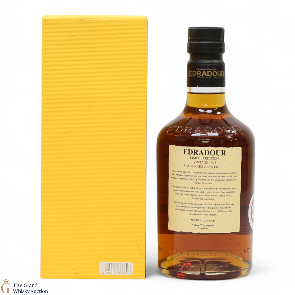 A limited 22-year-old single cask from Edradour, distilled on the 22nd March 1993 matured in oak Cask #8/737/5, bottled on the 15th February 2016 after a finishing period in a sauternes cask. This is one of just 294 bottles.