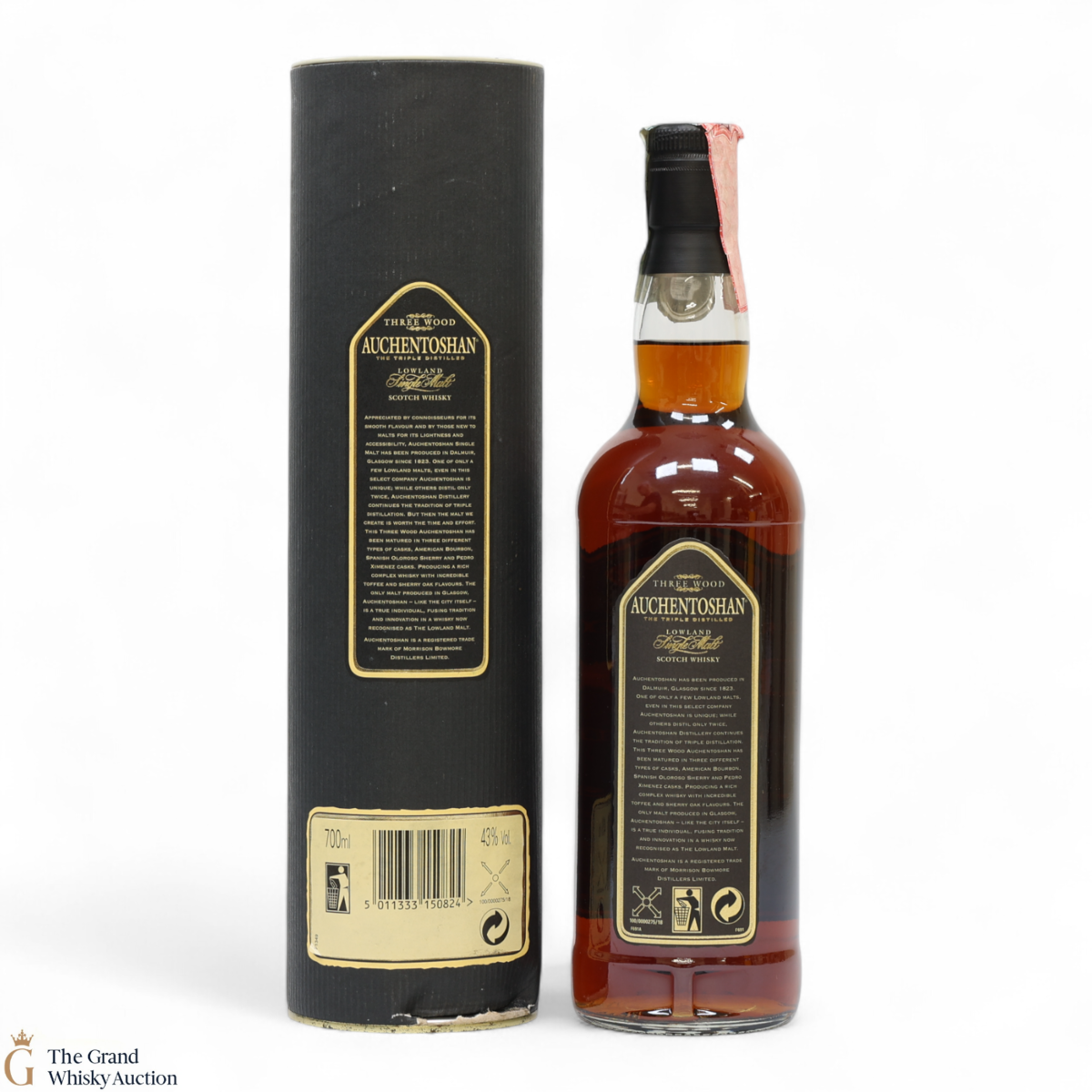 Due to the various ages of bottles and their seals, the condition of liquid is at the buyer's discretion and no claim can be lodged against failure/leakage in transit. Loss and breakage cover is available at 3% of the hammer price as standard. If the lot is not insured, no claim can be lodged against the courier or The Grand Whisky Auction for breakage or loss in transit.