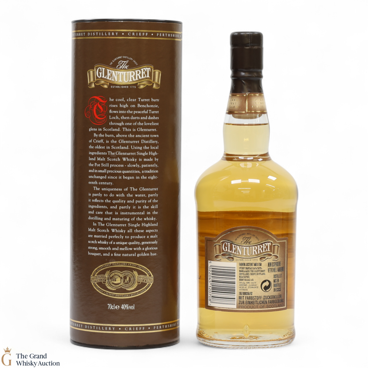 Due to the various ages of bottles and their seals, the condition of liquid is at the buyer's discretion and no claim can be lodged against failure/leakage in transit. Loss and breakage cover is available at 3% of the hammer price as standard. If the lot is not insured, no claim can be lodged against the courier or The Grand Whisky Auction for breakage or loss in transit.