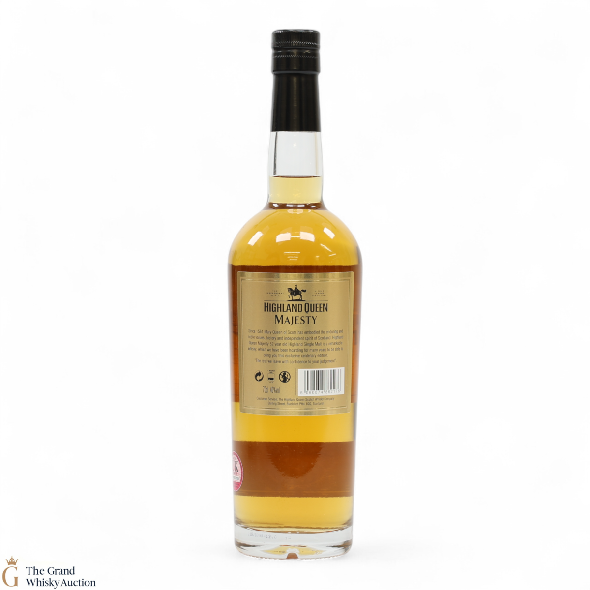 Due to the various ages of bottles and their seals, the condition of liquid is at the buyer's discretion and no claim can be lodged against failure/leakage in transit. Loss and breakage cover is available at 3% of the hammer price as standard. If the lot is not insured, no claim can be lodged against the courier or The Grand Whisky Auction for breakage or loss in transit.