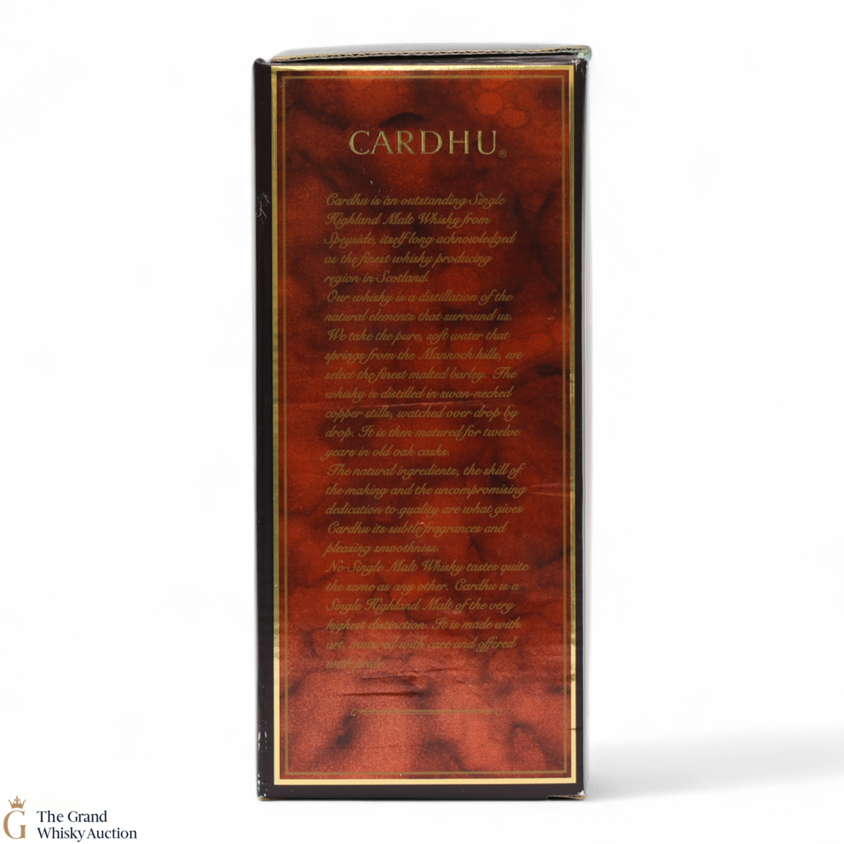 Cardhu 12-year-old single malt whisky from Speyside, Scotland. This single malt was purely produced at the distillery in Morayshire, Scotland. Although recognised as a Speyside whisky, they actually advertise as being Highland Scotch Whisky.