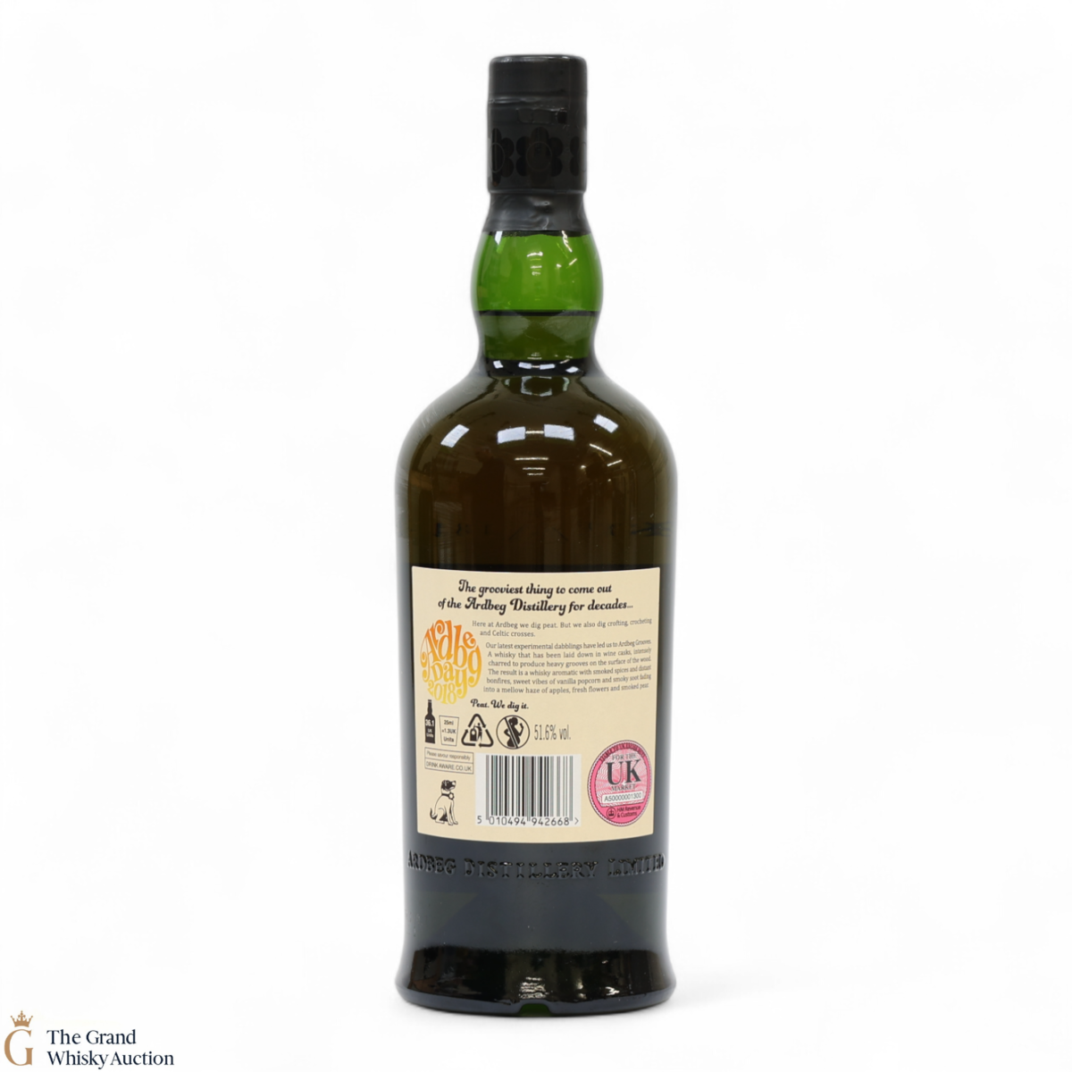 This limited edition Islay single malt was released to mark the 2018 Ardbeg Day at the Islay Festival of Music & Malt. The theme is a throwback to the Island's 1960s spirit, embodying the ideals of 'peat & love'! Ardbeg Grooves is crafted with ex-wine casks that are re-charred to create heavy grooves in the wood, allowing more interaction with the spirit and creating a richer flavour.