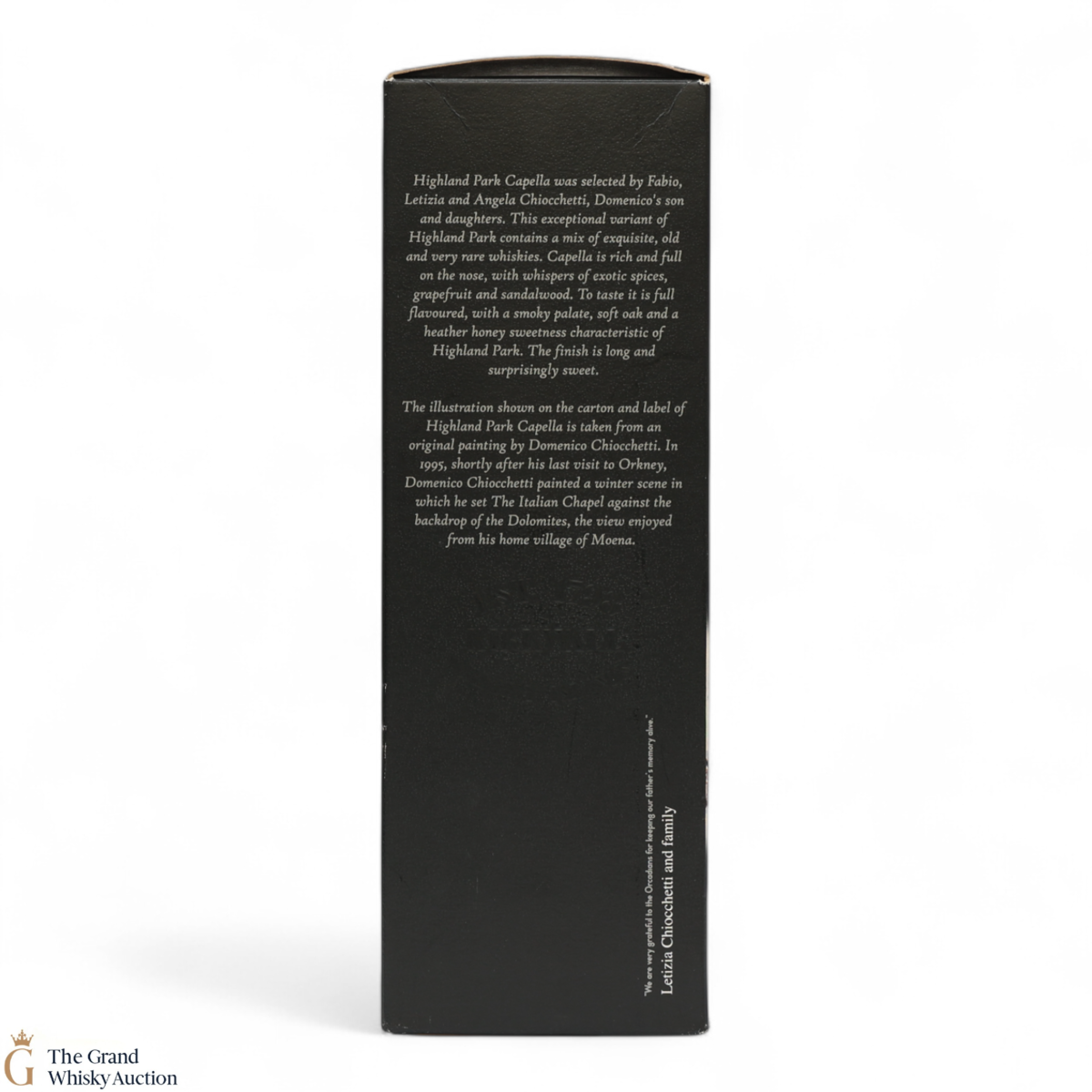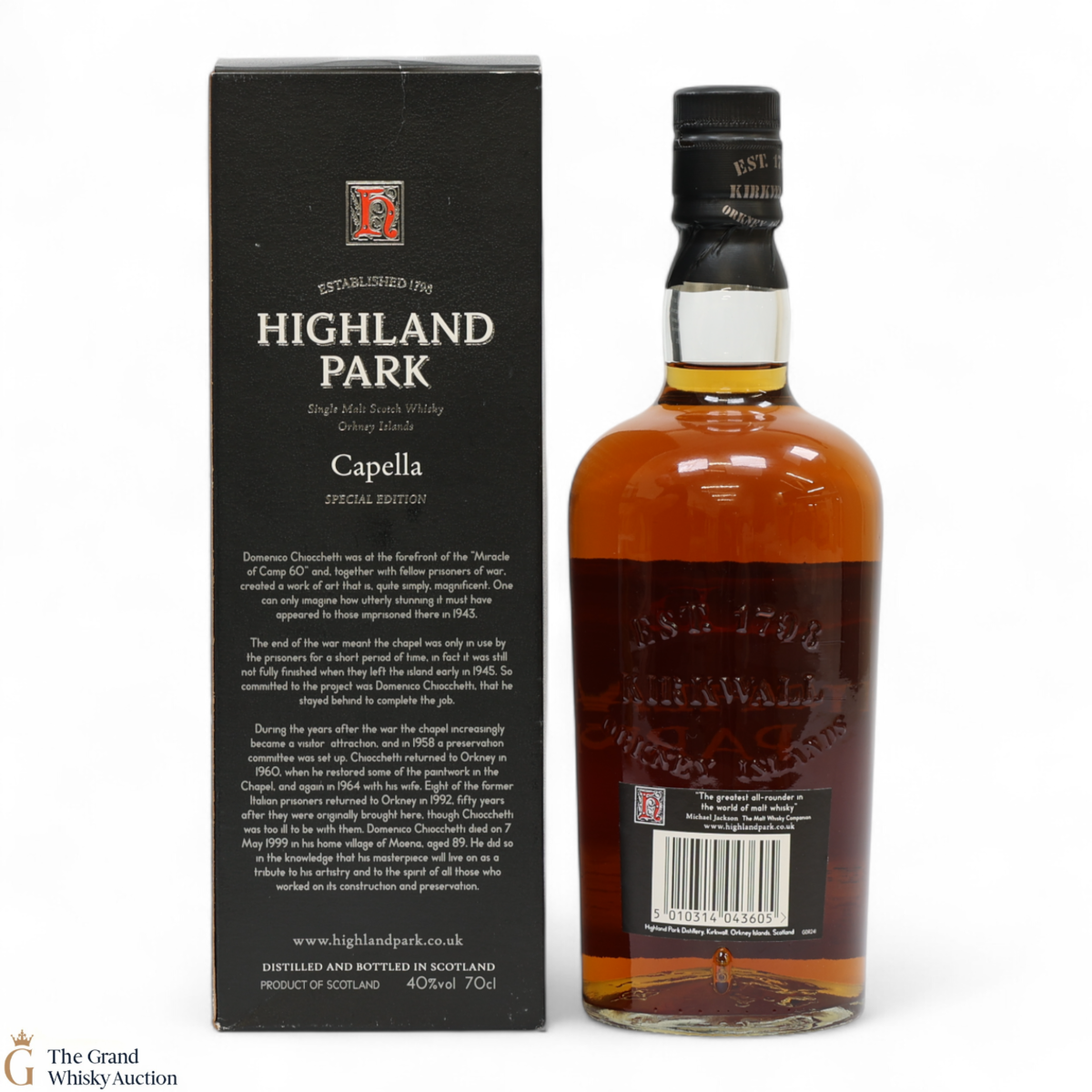 Highland Park Capella was released in 2002. It marks the 60th anniversary of one of the most famous landmarks on the island - The Italian Chapel.