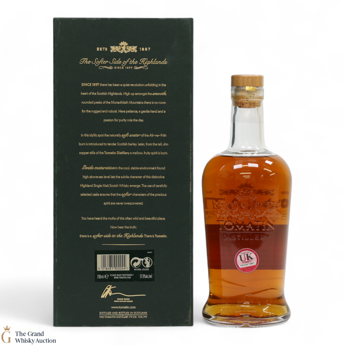 Tomatin Distillery was founded in 1897 by the Tomatin Spey Distillery Company, located in the Highlands between Aviemore and Inverness. Going through various fluctuations in production whilst growing from 2 stills to 23 stills throughout the 60s and 70s before going into liquidation. In 1985 the Distillery was purchased by long-term Japanese customers, Takara Shuzo Co. and Okara & Co. thus becoming the first Scottish distillery to be under Japanese management. Later the prestigious Antiquary blender J&W Hardie was added to the portfolio, and Marubeni bought the distillery. In more recent years production has been downsized to utilise just 10 stills and the decision was made to focus on the single malt range, such as the ‘Cu Bocan’ expression released in 2013.