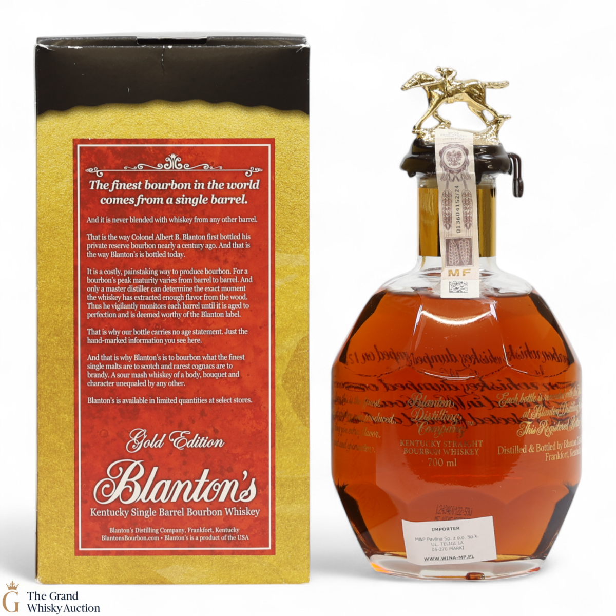 PLEASE NOTE: The wax seal on Blanton's bottles are prone to cracking in transit due to their design. Therefore, as stated in our T&C’s, we do not and will not accept liability should the seal be breached, broken, split or leak in transit. Additionally, please know due to the design of the internal cardboard packaging that surrounds the top of the bottles, it too may be torn. By bidding on this lot you have understood this to be true. Insurance is for complete breakage or loss in transit only.