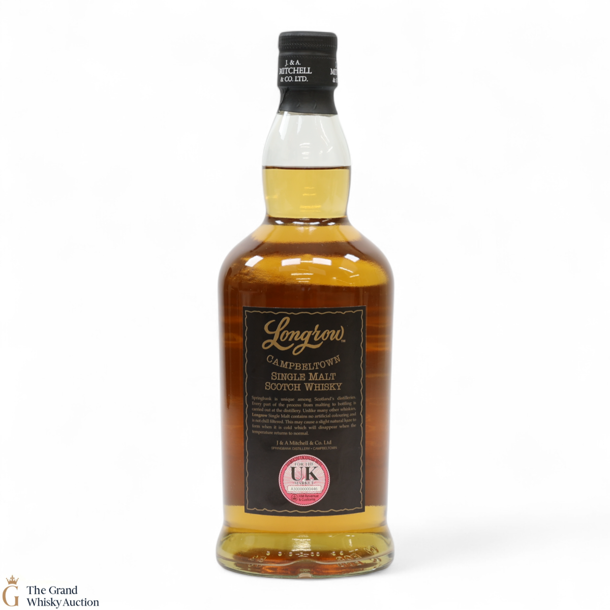 A bottle of Longrow CV which used to be Longrow's entry-level whisky. Longrow is Springbank's heavily peated whisky - this is a no-age statement expression. It was named Best Peated Malt at the 2010 Malt Maniacs Awards.