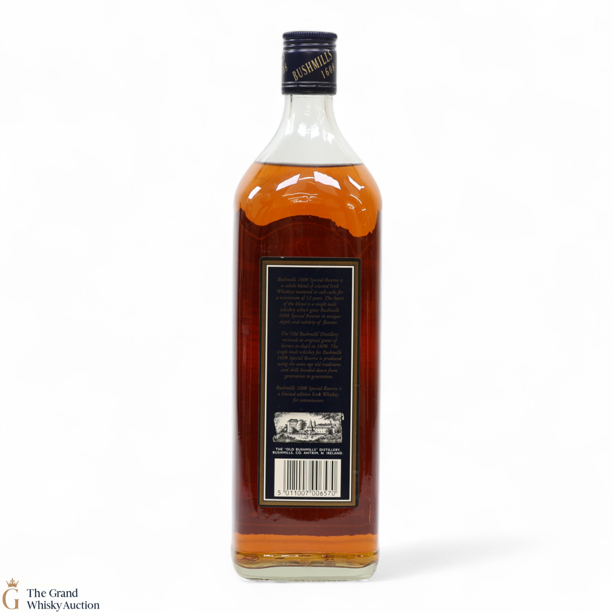 A 1L bottle of Bushmills 1608 Reserve. Made up of bourbon and sherry cask matured malts - and blended with a small amount of grain whiskey.