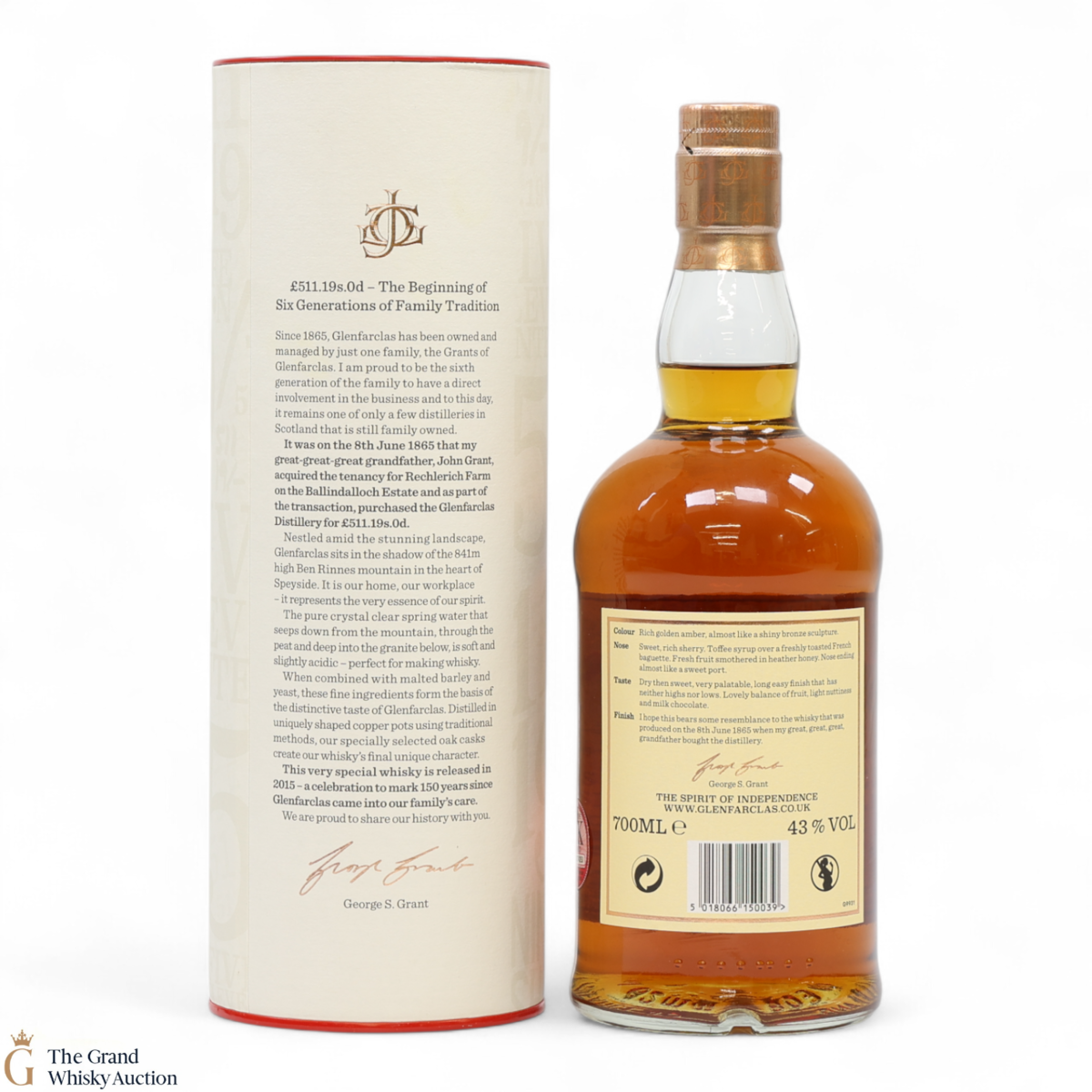 Bottled by Glenfarclas to celebrate 150th years of the distillery being owned by the Grant family.
