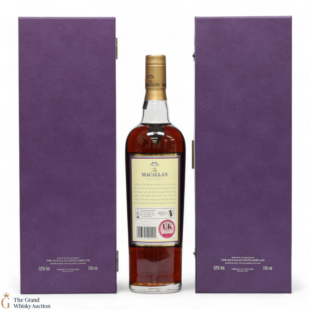 A highly desirable, limited-edition release from Macallan to commemorate the Golden Jubilee of Her Majesty Queen Elizabeth II (1952-2012). This is one of 2012 bottles. Drawn from its cask on the 8th of February 2012, by no coincidence the date of Her Majesty’s accession, this sherry cask-matured expression was bottled at 52% ABV. It is an instant classic and highly collectible.