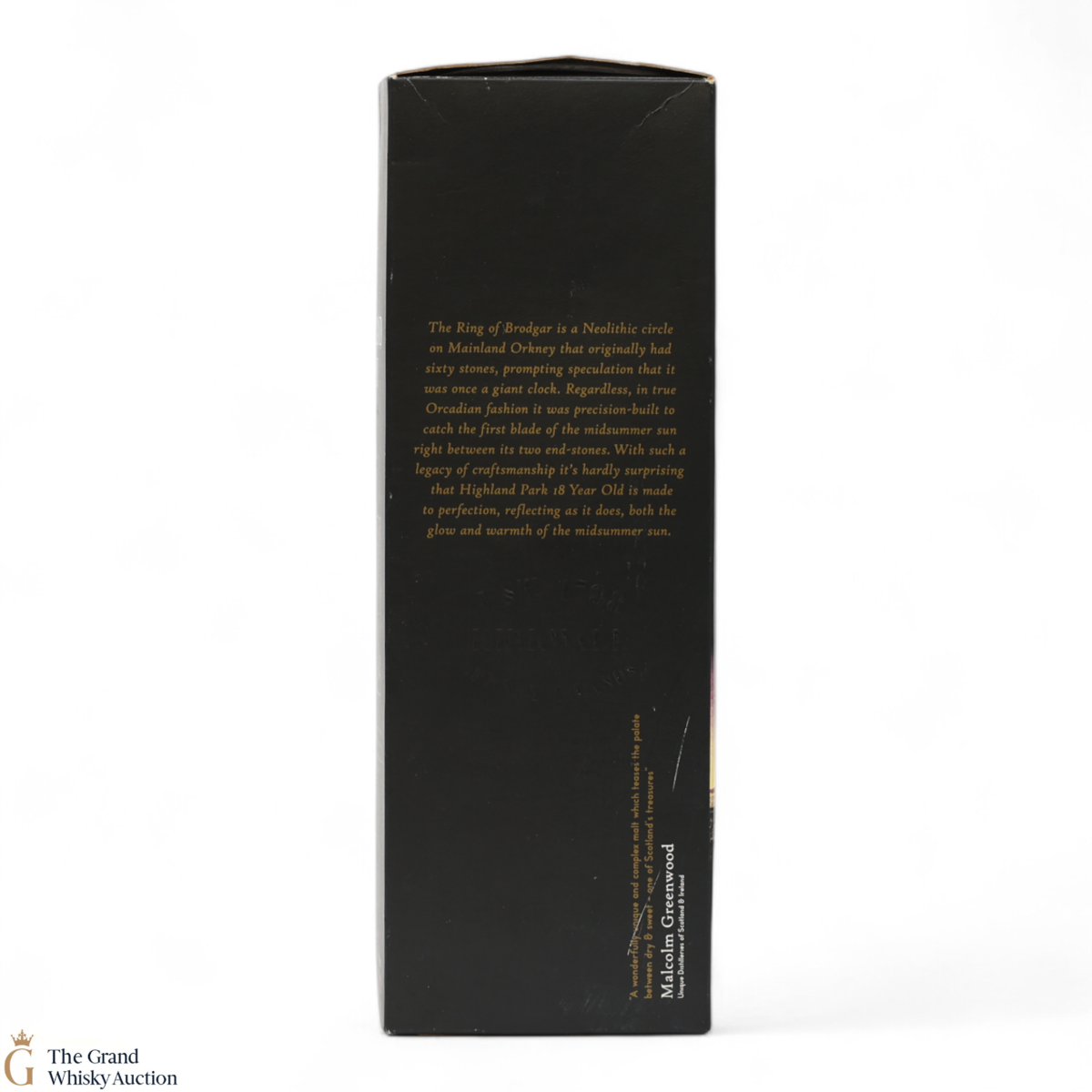 Due to the various ages of bottles and their seals, the condition of liquid is at the buyer's discretion and no claim can be lodged against failure/leakage in transit. Loss and breakage cover is available at 3% of the hammer price as standard. If the lot is not insured, no claim can be lodged against the courier or The Grand Whisky Auction for breakage or loss in transit.