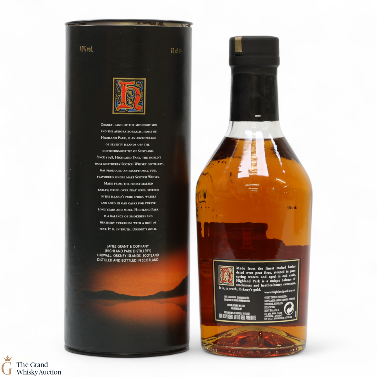 Highland Park 12 year old - one of the best malts in the world year on year. This bottling has been in its core range for over 100 years. This design of bottle was used by Highland Park from 1999-early 2000s.