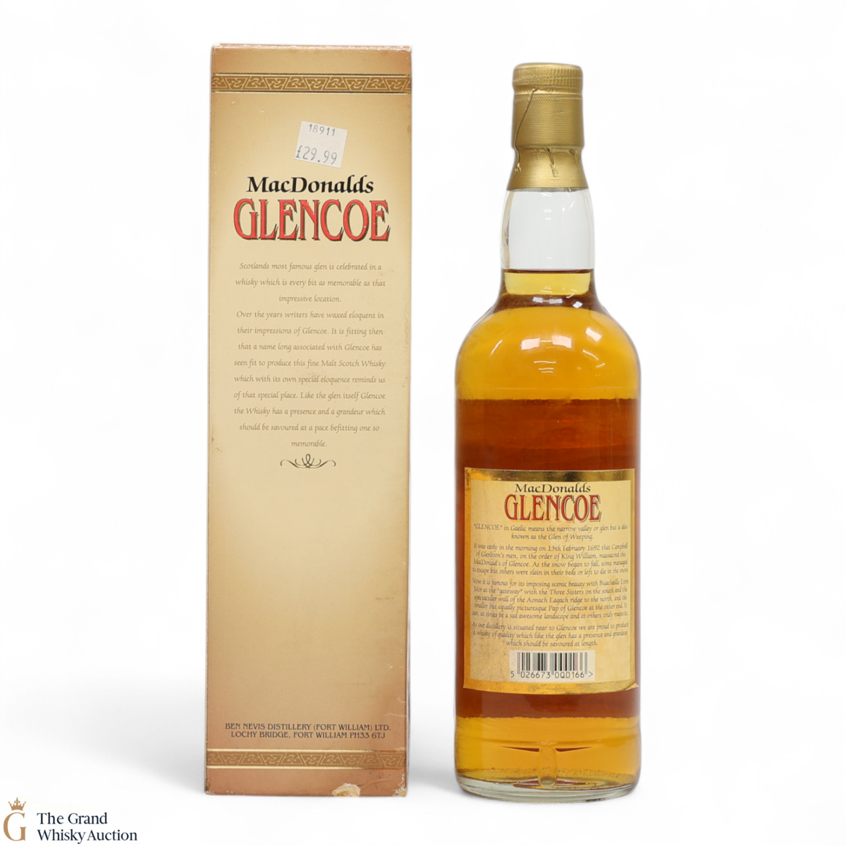 A 70cl bottle of MacDonald's Glencoe 8-year-old pure Highland Malt Scotch Whisky.