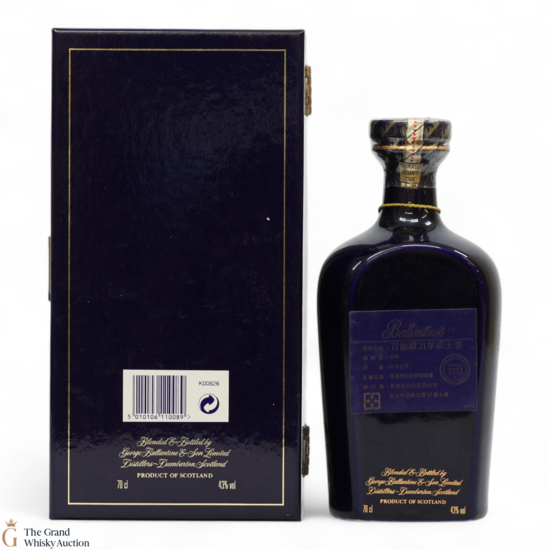 Distilled in Dumbarton Scotland. Ballantine's 21-year-old is a distinguished whisky characterised by its maturity and subtle layering of fruit, delicate floral hints, and aromatic spices.