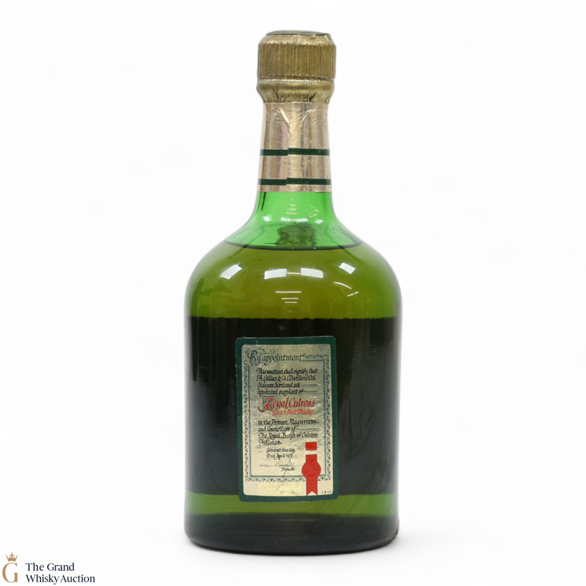 Due to the various ages of bottles and their seals, the condition of liquid is at the buyer's discretion and no claim can be lodged against failure/leakage in transit. Loss and breakage cover is available at 3% of the hammer price as standard. If the lot is not insured, no claim can be lodged against the courier or The Grand Whisky Auction for breakage or loss in transit.