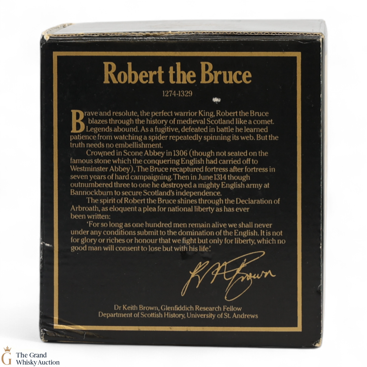 A special ceramic decanter from Glenfiddich, part of a series to recognise famous Scots. This edition carries a picture of Robert the Bruce.