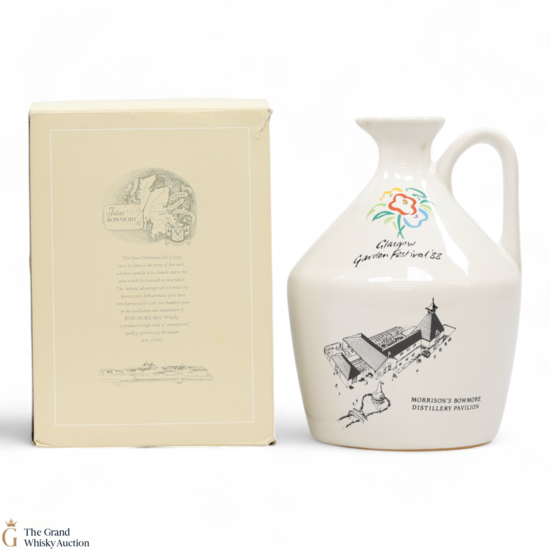 A rare ceramic Bowmore released for Glasgow Garden Festival in 1988, with Bowmore 15-year-old inside, which has hints of white chocolate, exotic fruits and pepper.