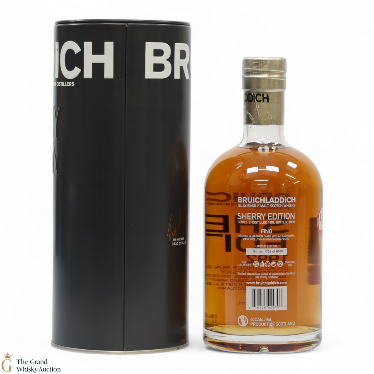 Bruichladdich Fino Sherry was the 4th and final bottle in the Bruichladdich sherry finished range. It was distilled in 1992 matured for 17 years in Fino floor butts from Bodegas Rey Fernando de Castilla and was bottled in 2009. This is one of 6000 bottles released.