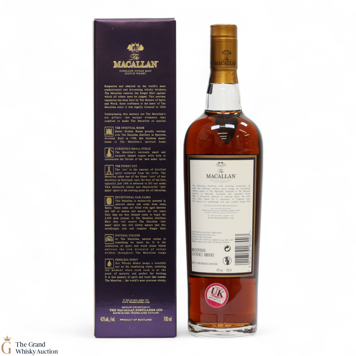 Due to the various ages of bottles and their seals, the condition of liquid is at the buyer's discretion and no claim can be lodged against failure/leakage in transit. Loss and breakage cover is available at 3% of the hammer price as standard. If the lot is not insured, no claim can be lodged against the courier or The Grand Whisky Auction for breakage or loss in transit.