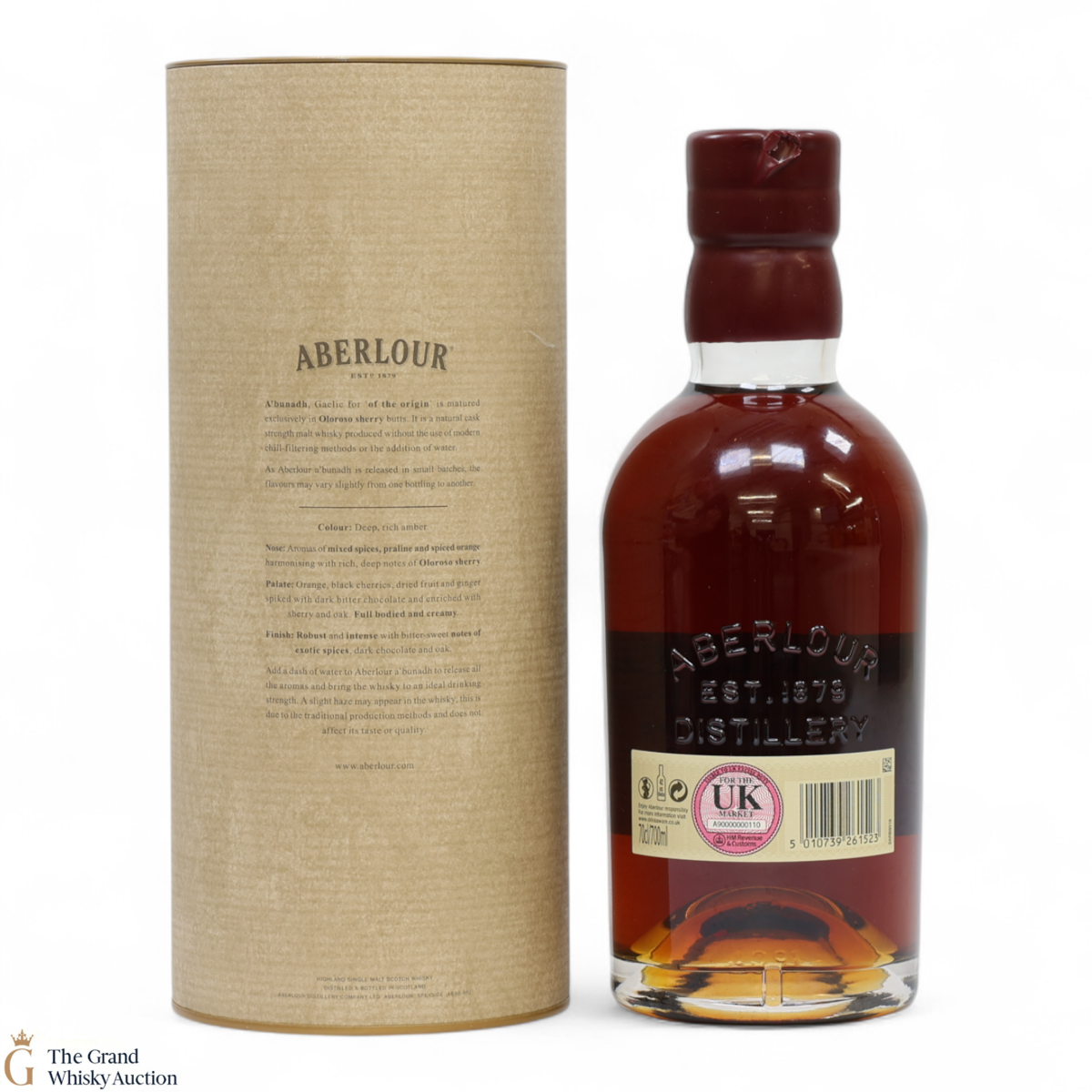 Meaning 'of the origin' in Gaelic, A'bunadh is made in homage to Aberlour's founder, James Fleming. This is batch No. 34 of the popular A'Bunadh single malt. It has been matured in Spanish Oloroso sherry butts and bottled at cask strength at 59.5% creating a dark luxurious whisky.