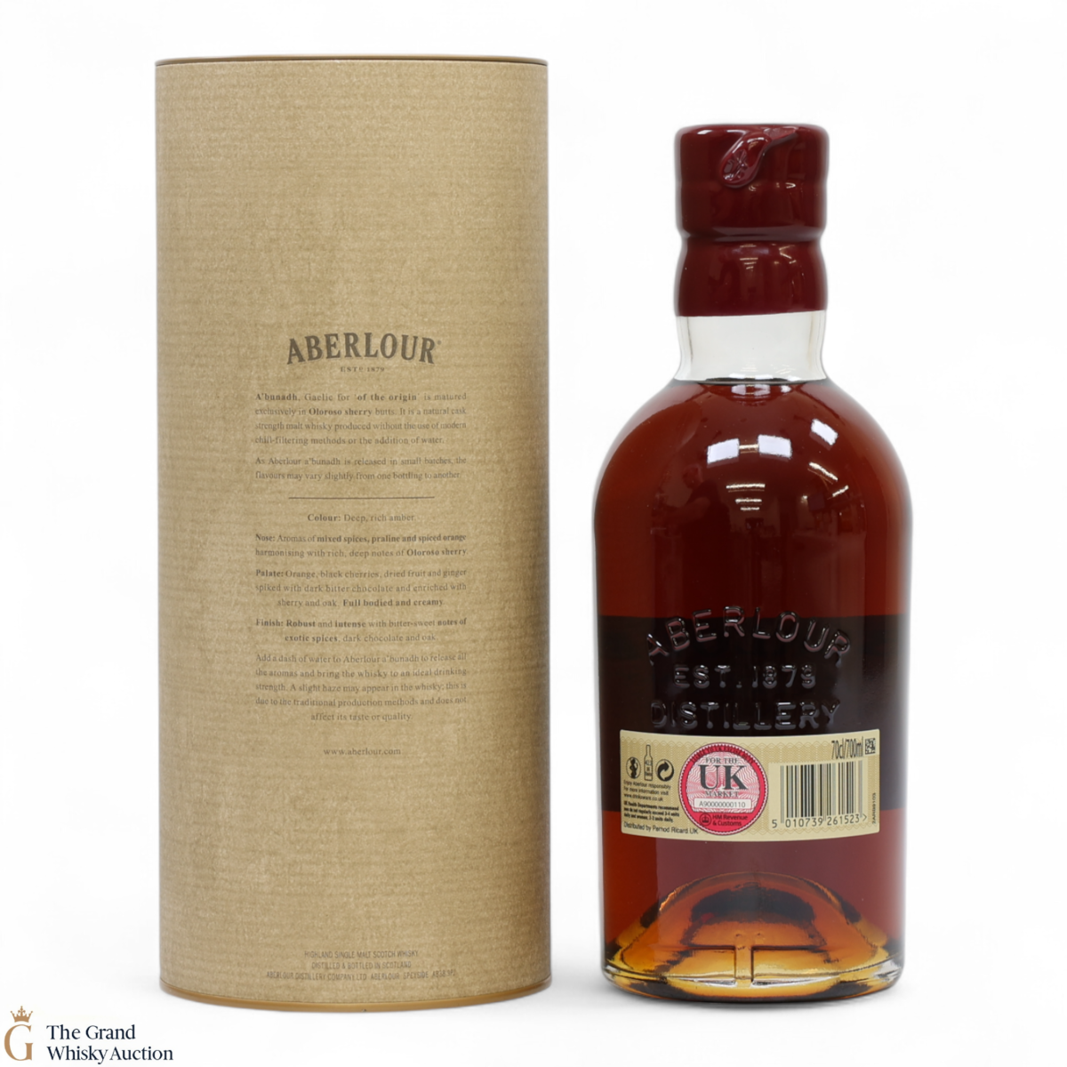 Meaning 'of the origin' in Gaelic, A'bunadh is made in homage to Aberlour's founder, James Fleming. This is batch No. 49 of the popular A'Bunadh single malt. It has been matured in Spanish Oloroso sherry butts and bottled at cask strength at 60.1%, creating a dark luxurious whisky.