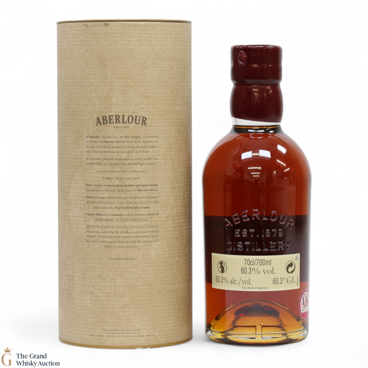 Meaning 'of the origin' in Gaelic, A'bunadh is made in homage to Aberlour's founder, James Fleming. This is batch No. 35 of the popular A'Bunadh single malt. It has been matured in Spanish Oloroso sherry butts and bottled at cask strength at 60.3% creating a dark luxurious whisky.
