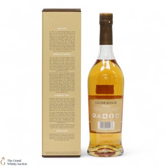Tusail is the sixth entry in Glenmorangie's Private Collection. Made using traditionally floor-malted Maris Otter barley, this is an old-fashioned whisky backed up by Glenmorangie's modern approach to whisky-making.