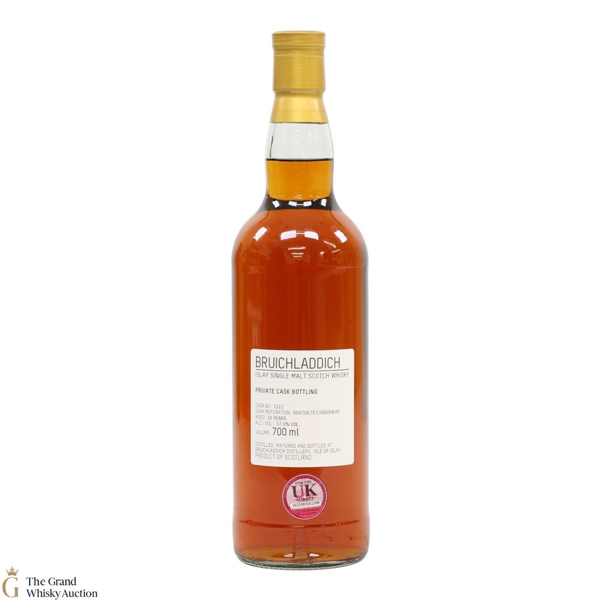 Distilled at the Bruichladdich Distillery in Islay this single malt was matured in Rivesaltes Hogshead #1512 for 16 years. It was then bottled at a strength of 57.8% ABV.
