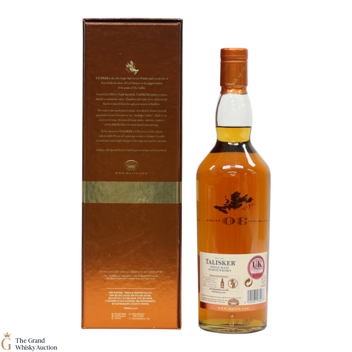 A 30-year-old Talisker single malt - a very nicely matured expression from the Isle of Skye Distillery. This bottle is from the 2012 release and is one of just 3186 bottles.