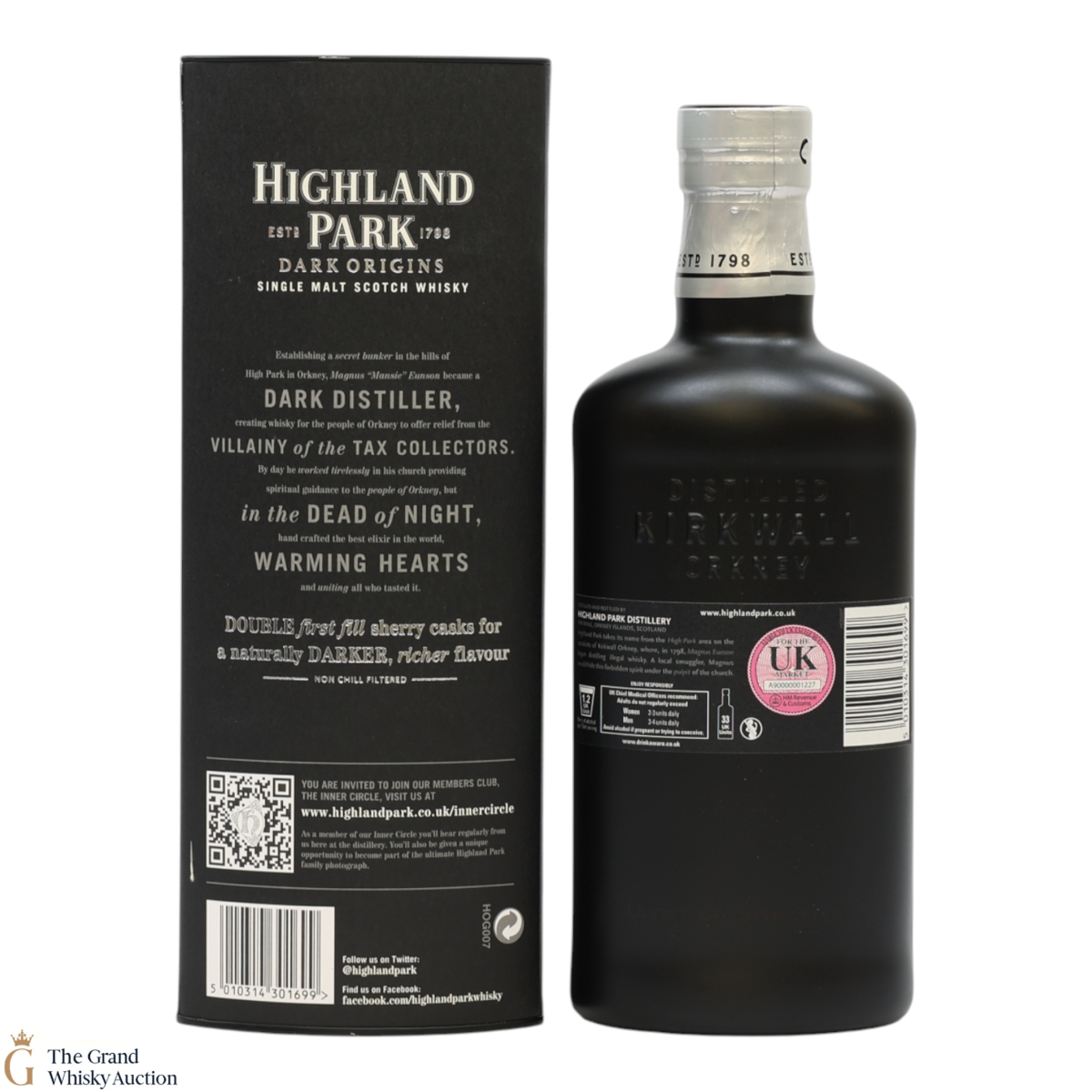 Highland Park Dark Origins is core bottling that celebrates the early days of Magnus Eunson's illicit distilling on Orkney, back before the distillery was even founded in 1798. Magnus worked as a butcher and church official by day, but by night he was a legendary whisky smuggler and distiller outwitting the exciseman.