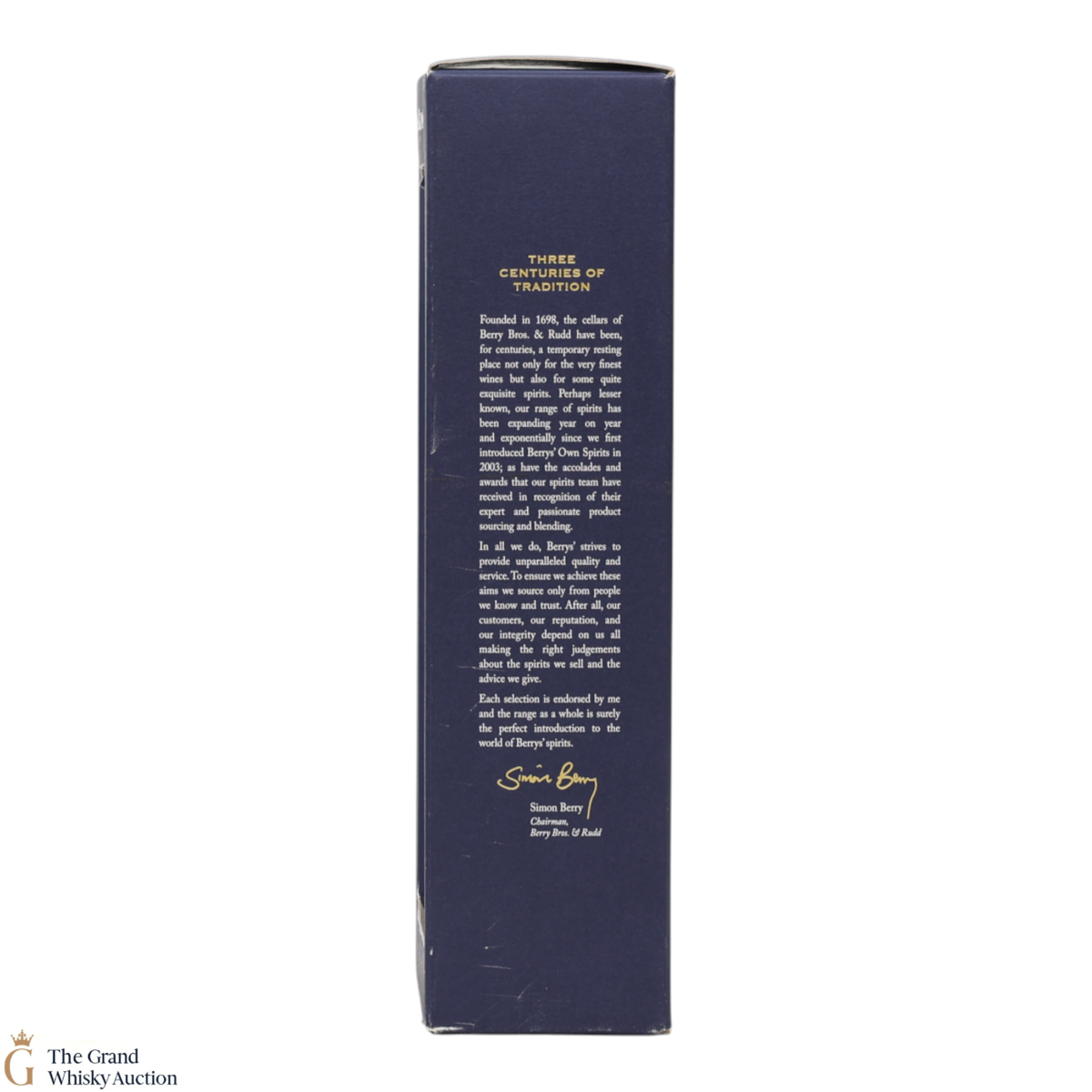 Due to the various ages of bottles and their seals, the condition of liquid is at the buyer's discretion and no claim can be lodged against failure/leakage in transit. Loss and breakage cover is available at 3% of the hammer price as standard. If the lot is not insured, no claim can be lodged against the courier or The Grand Whisky Auction for breakage or loss in transit.