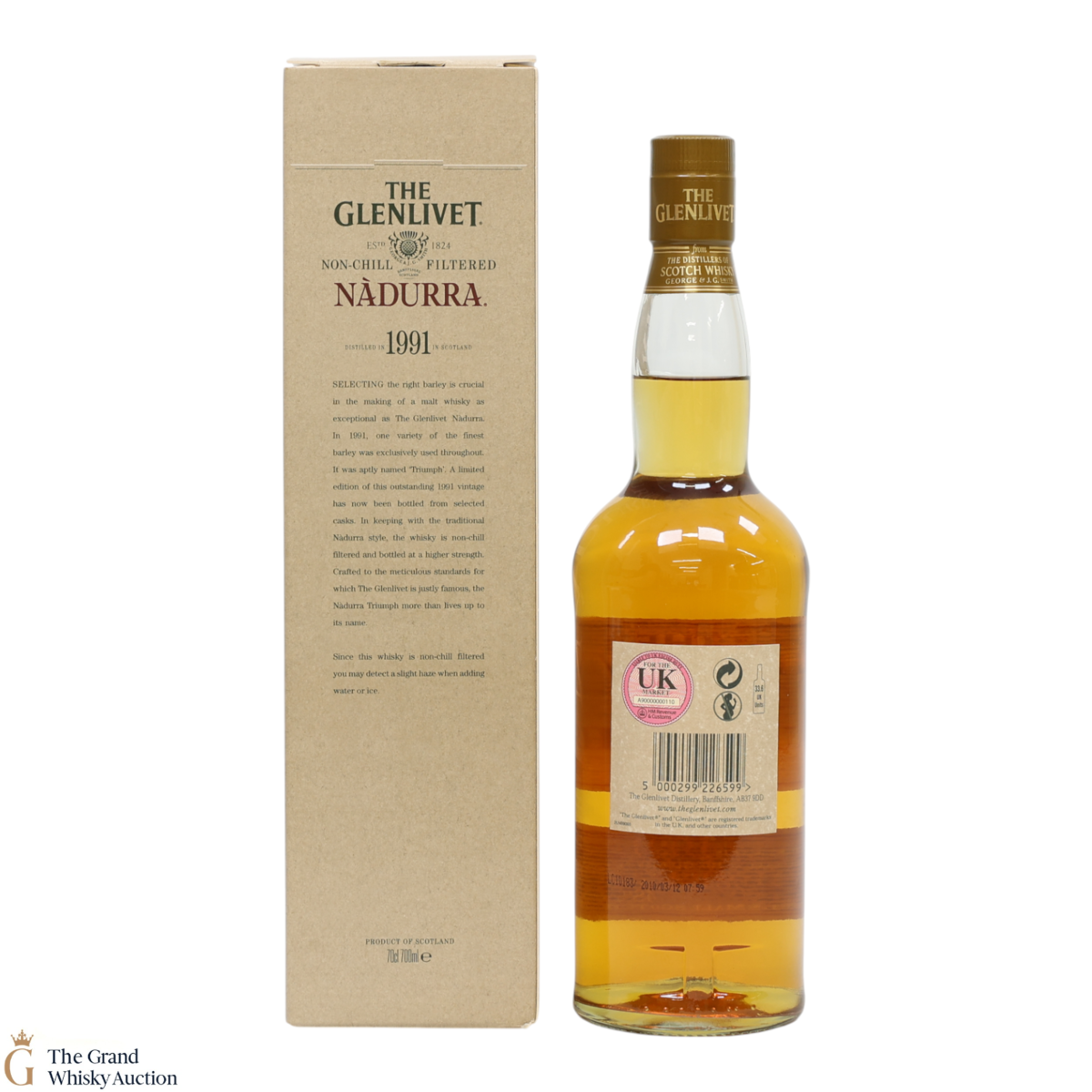 Released as part of the Glenlivet Nadurra range, this single malt was finished in Heavily peated whisky casks. Every release in this series was bottled and released in small batches - this is batch #0310B, a 1991 vintage edition. This is a 70cl bottling.