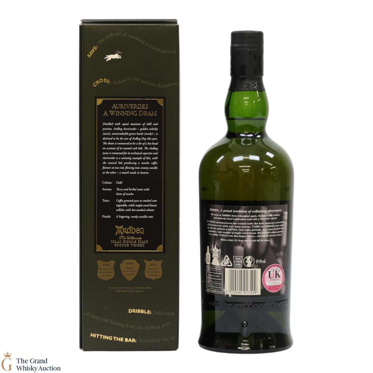 This special edition Ardbeg single malt was released on Ardbeg Day 2014 during Feis Ile. Auri(Gold) Verdes (Green) it refers to the golden whisky and the iconic Ardbeg green bottle of Ardbeg whisky. It is said to be a dram of two halves - the whisky uses toasted cask lids to create Mocha Coffee flavours that team up with creamy vanilla.