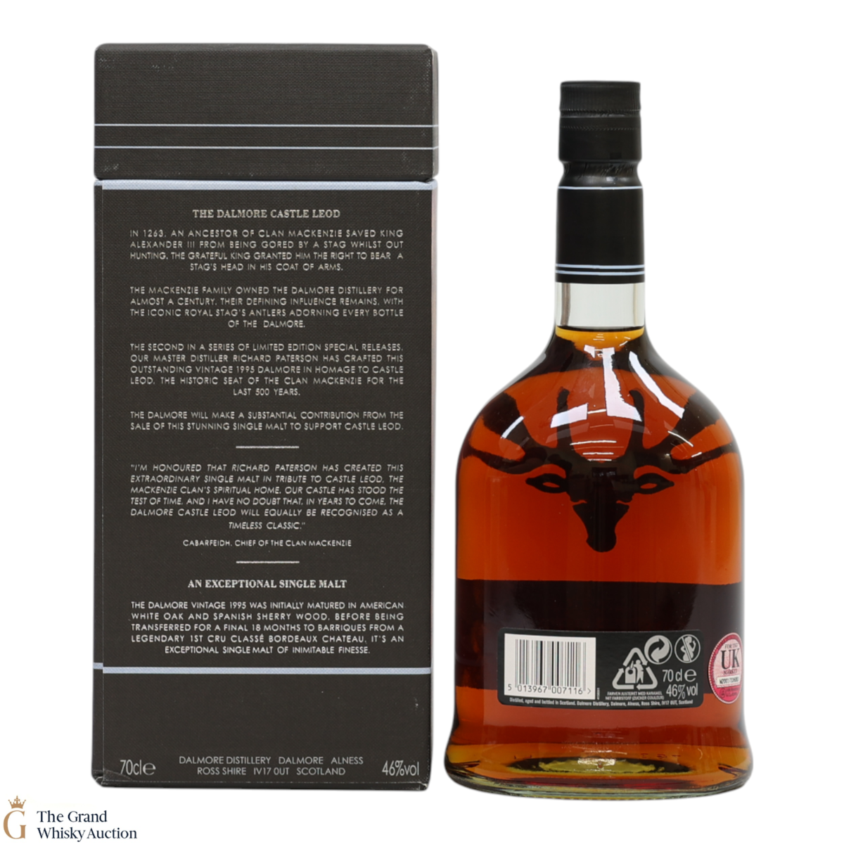 Castle Leod is the second release in the series. It was distilled in 1995 and bottled in 2011. It was matured in American white oak and Spanish sherry wood, before being finished in Bordeaux casks for a final 18 months. It was bottled at 46% ABV.