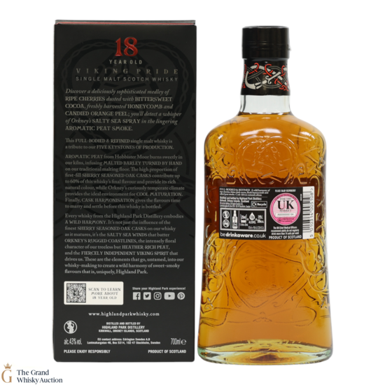 For Viking Pride, Highland Parks Master Whisky Maker Gordon Motion carefully selects up to 120 casks which have matured for 18 years or longer and marries them together, the flavours slowly combine and gather depth and consistency.