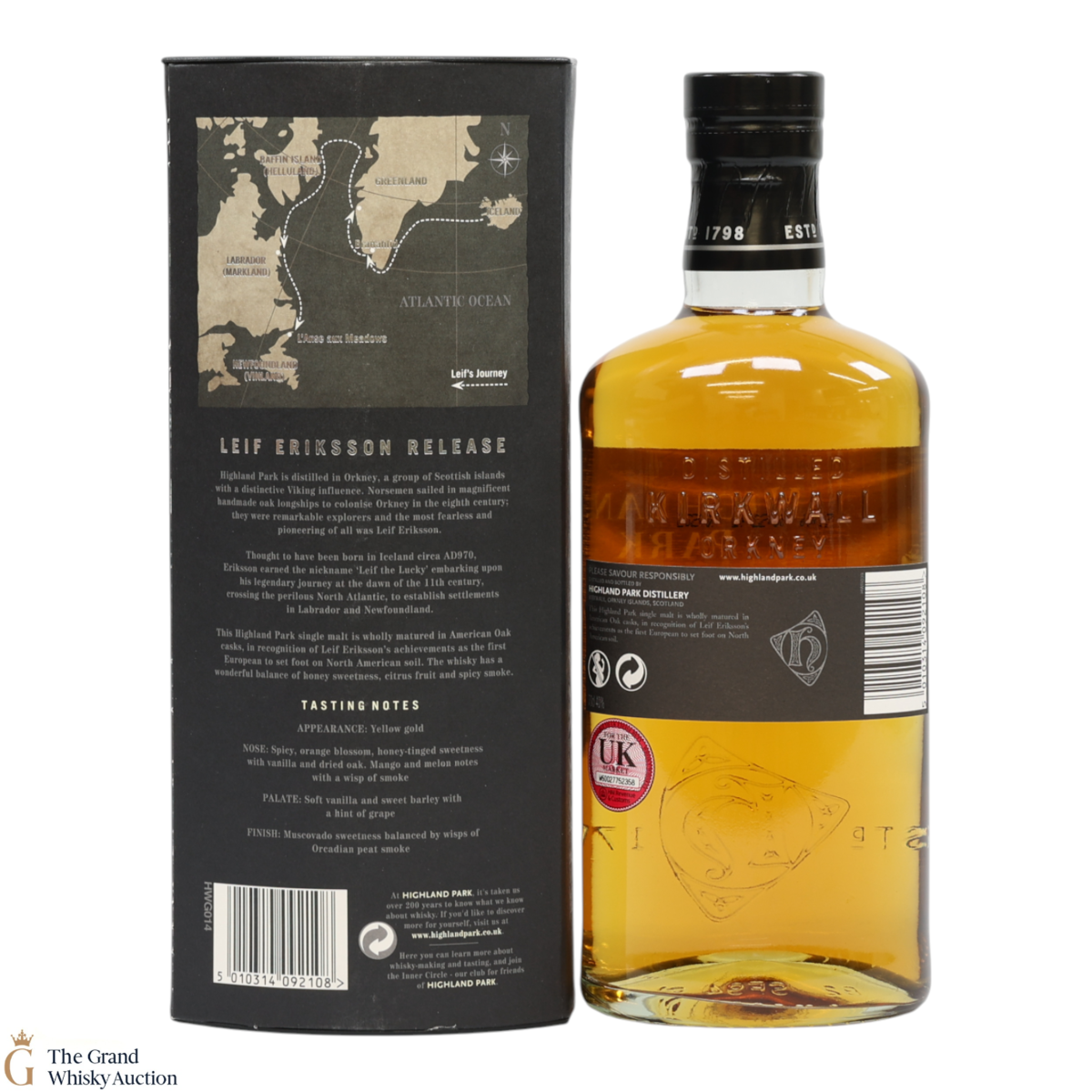 Launched in March 2010, for the travel retail market, Highland Park Leif Eriksson Limited Edition was released to celebrate the first European to reach America over a thousand years ago. The single malt was matured in American oak casks, both ex-bourbon and ex-sherry in recognition of Leif Eriksson, a pioneering Viking explorer, as the first European man to set foot on American soil.