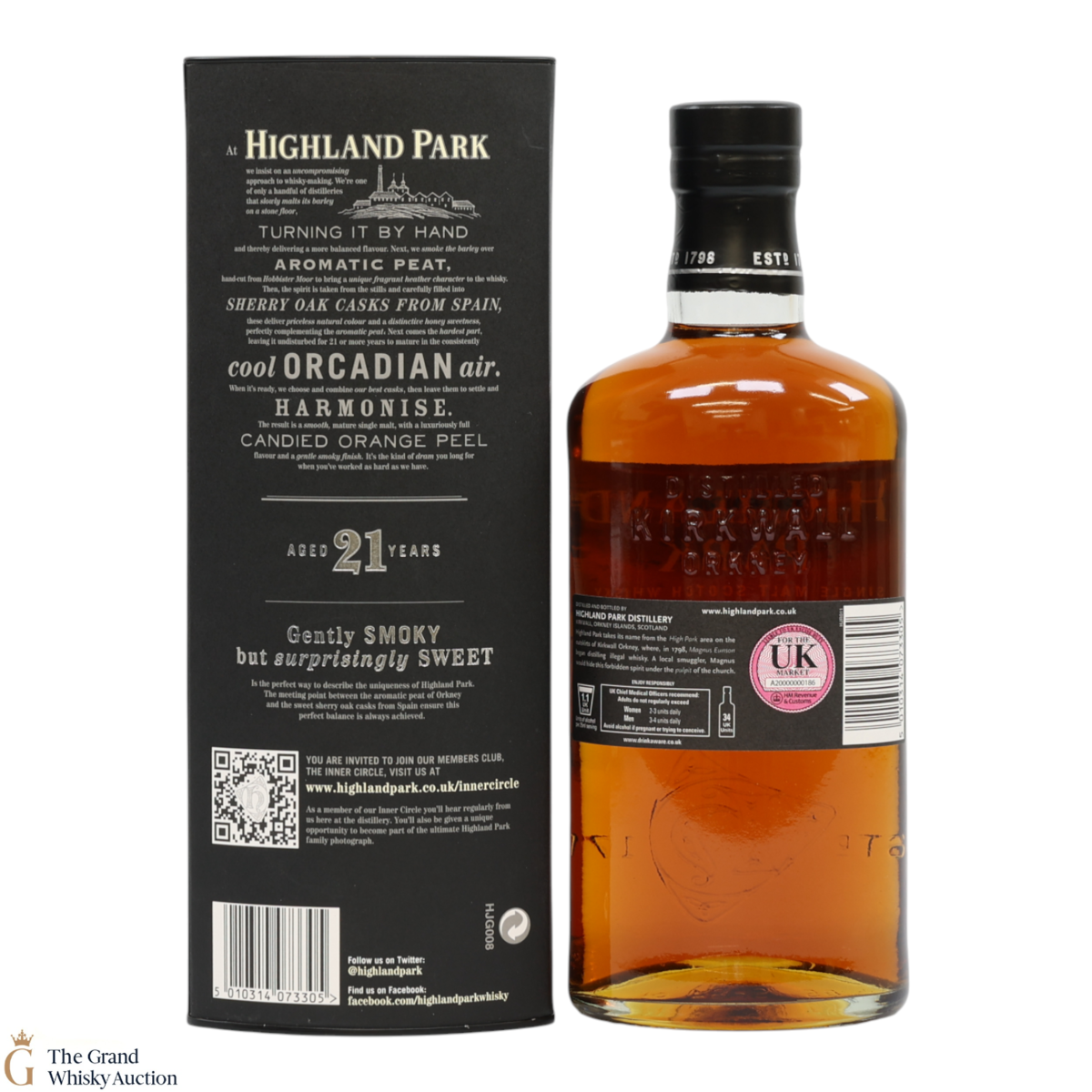 21-Year-Old Highland Park is considered one of the best expressions Highland Park produces by many. Originally created exclusively for global travel retail and duty-free markets, this whisky was named Best Single Malt of the Year at the World Whisky Awards 2009. Released in October 2007, Highland Park 21 is a full-flavoured, powerful, sweet single malt with a rich smoky finish.