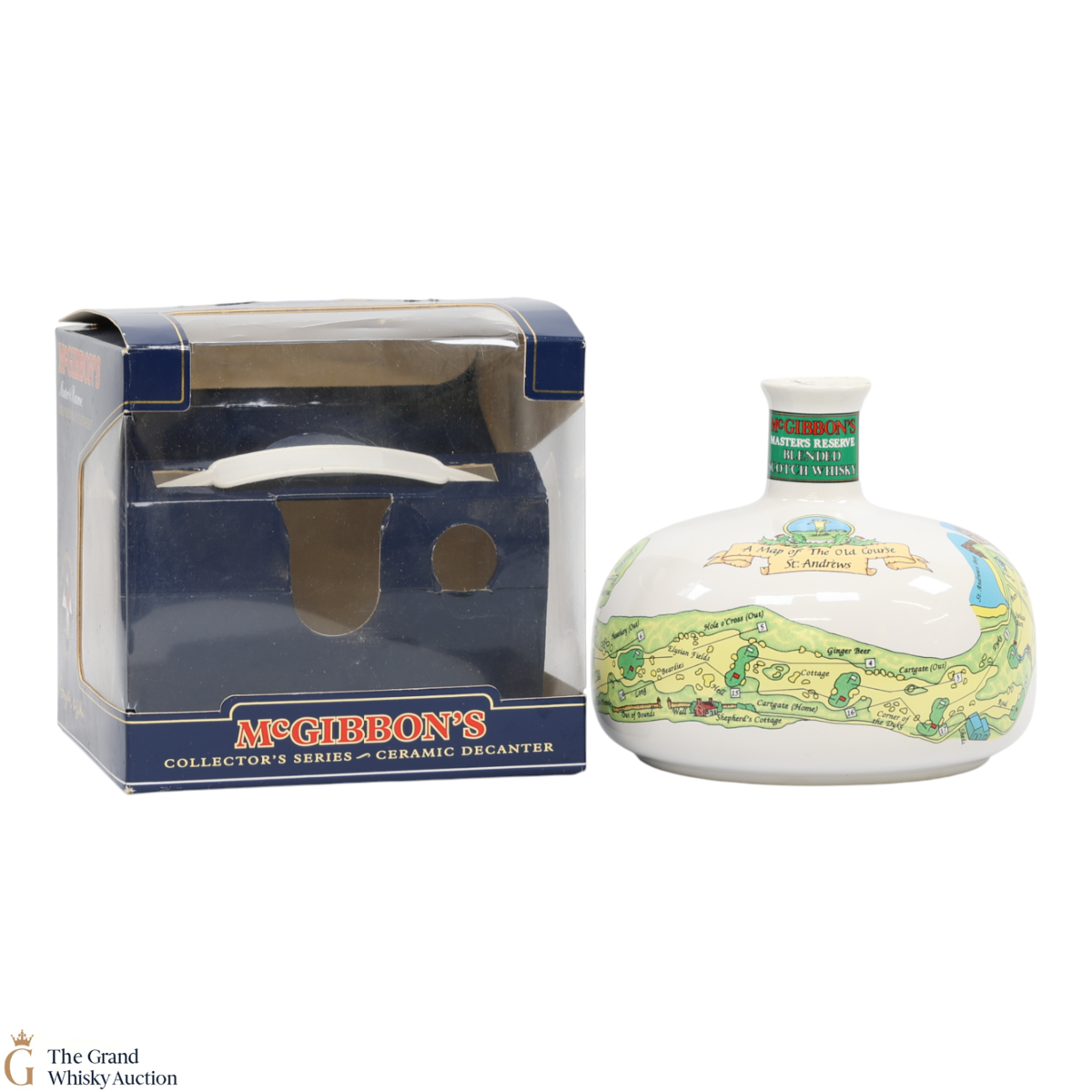 Decanter of blended Scotch whisky from McGibbon's depicting The Old Course at St Andrews.