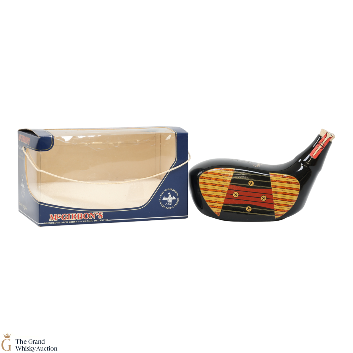A blended Scotch presented inside a golf club-shaped decanter.
