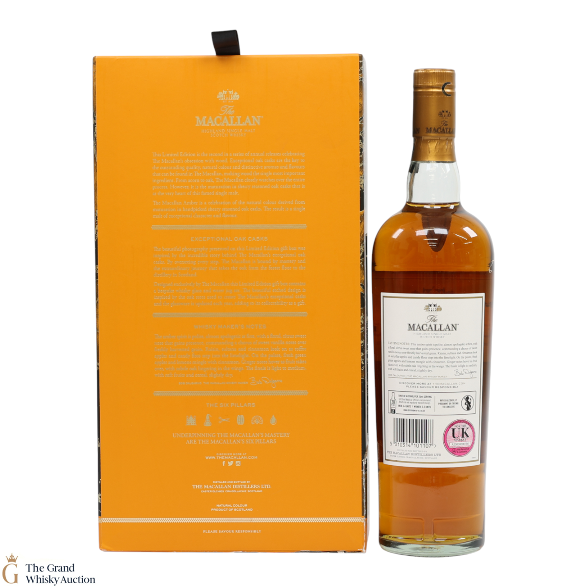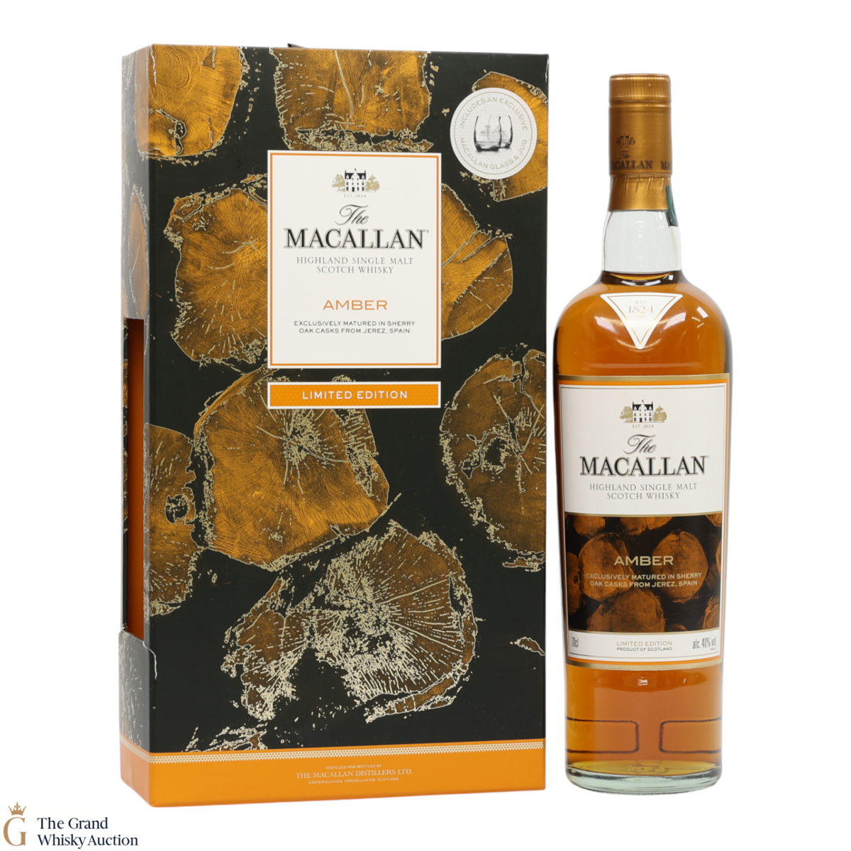 The Macallan Amber forms part of The Macallan 1824 Series which exemplifies their commitment to 100% natural colour, present in each and every Macallan single malt. This non-age statement range of Speyside single malts concentrates on colour; the theory is that by using 100% sherry casks and natural colour, the darker the whisky, the older and more complex.