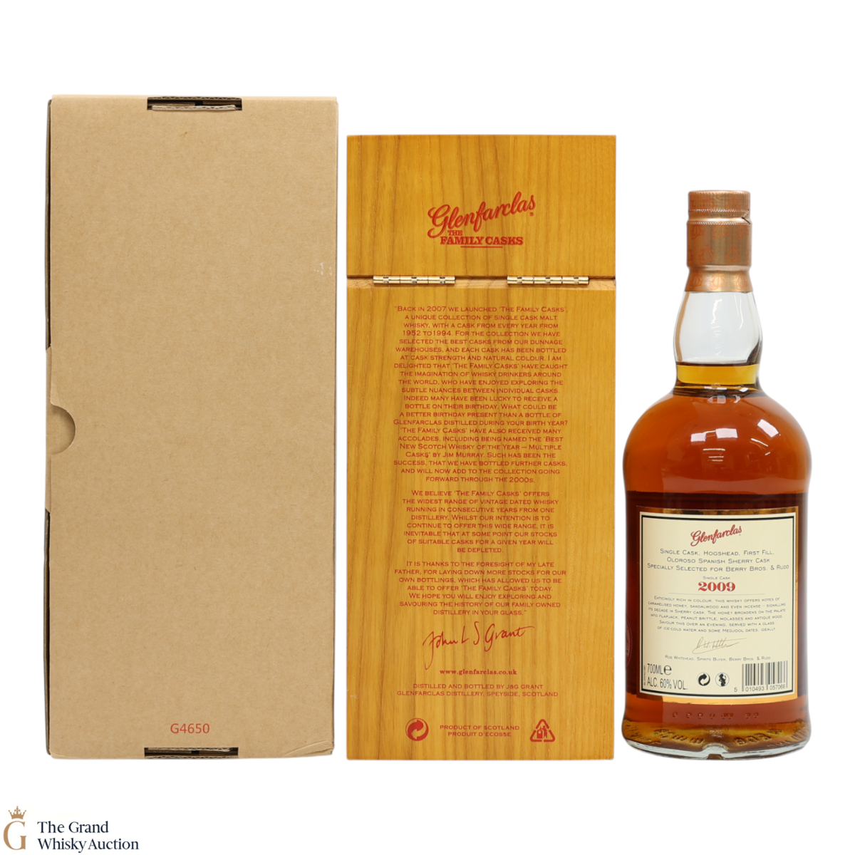 This 2009 vintage Glenfarclas Family Cask was bottled in 2018 as part of their Family Malt Collection. Matured in first-fill Oloroso sherry hogshead. This special edition Family Cask selected by Berry Bro & Rudd Spirits buyer Rob Whitehead. This is one of 177 bottles.