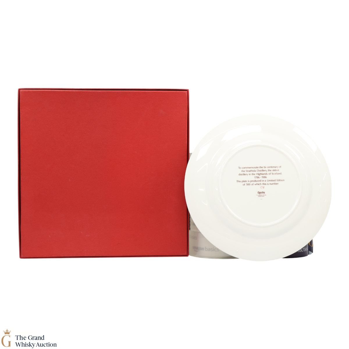 This lot contains a plate by Spode Ceramics given exclusively to the staff of Strathisla Distillery for the anniversary.