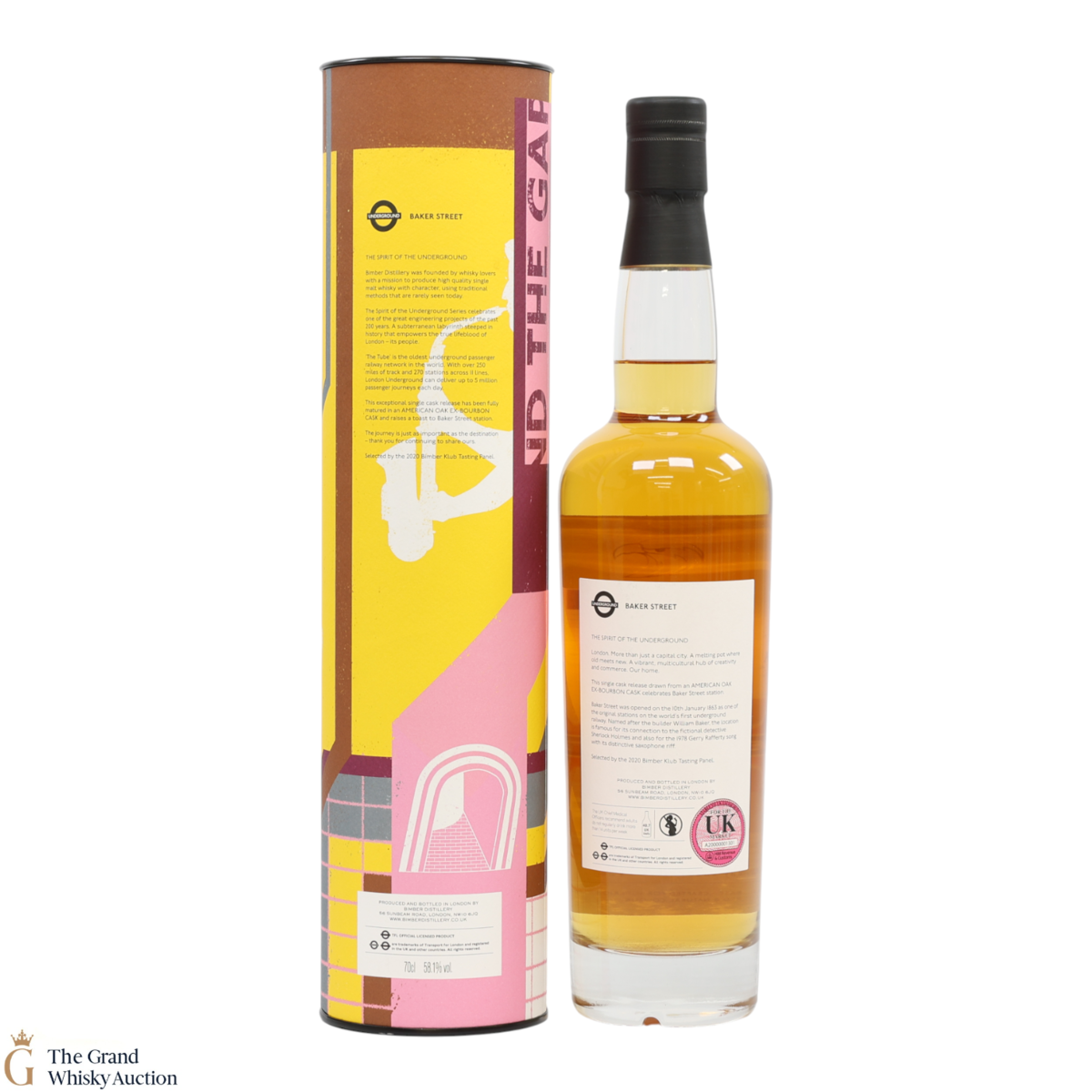 Distilled at the Bimber Distillery based in London, this single malt was matured in ex-bourbon cask #126 and bottled in May 2021 as part of The Spirit of the Underground series, given the title of Baker Street. Complete with its colourful packaging, this is one of only 264 bottles produced.