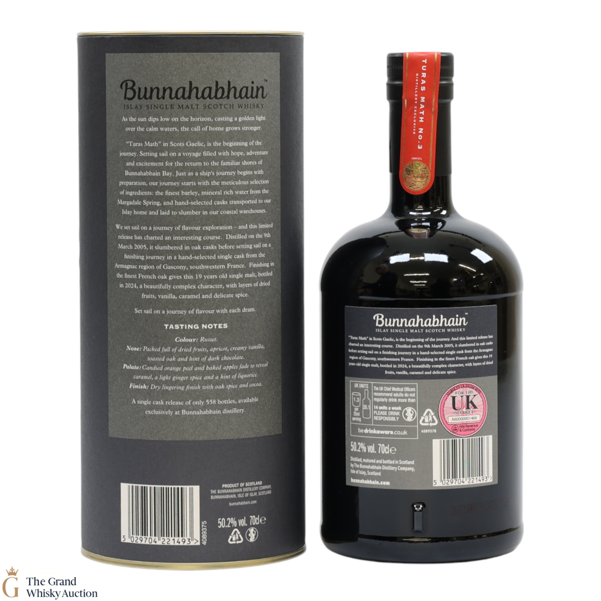 This is award-winning Turas Math No.3, a 19-year-old single malt that has been finished in a single, rare Armagnac cask.