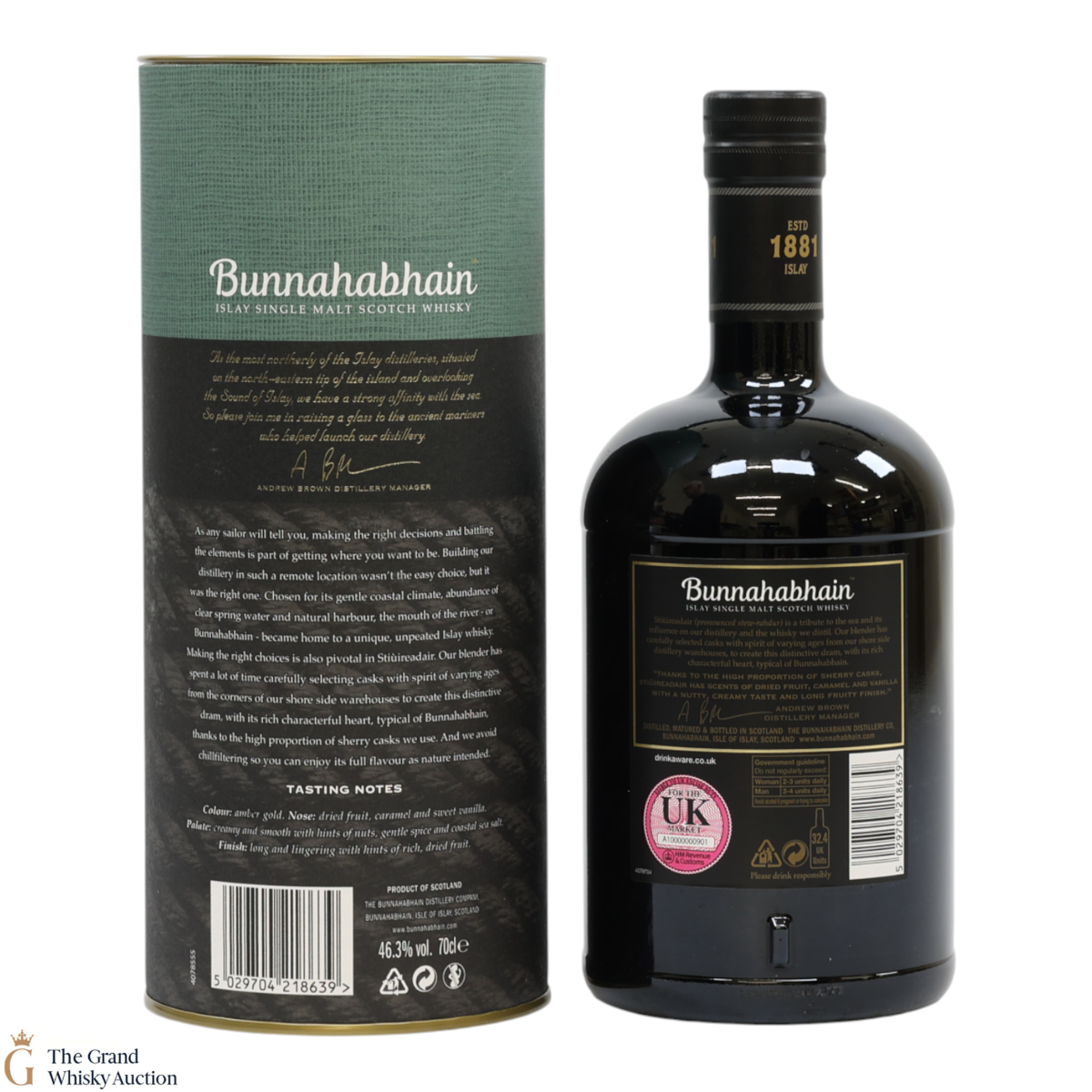 Situated on the Isle of Islay, Bunnahabhain Distillery was founded in 1881 and relied on the sea trade, receiving supplies by boat and sending seafarers back to the mainland with casks full of their special whisky. In the 1930s Bunnahabhain had a short closure before a new road was built to the distillery in 1960, adding another form of transport link to obtain supplies. Due to the increasing demand, a second pair of stills were installed at the distillery in 1963 and by 1979, the classic 12-year-old single malt was introduced worldwide. 1993 saw the last boat being docked as the road to the distillery was now the most suitable route for receiving ingredients and supplies. In the new decade, Burn Stewart merged with Distell which brought more investment into the brand and distillery, Bunnahabhain’s portfolio of products was extended and the packaging was further modernised, as well as a Visitor Centre which opened in 2021.